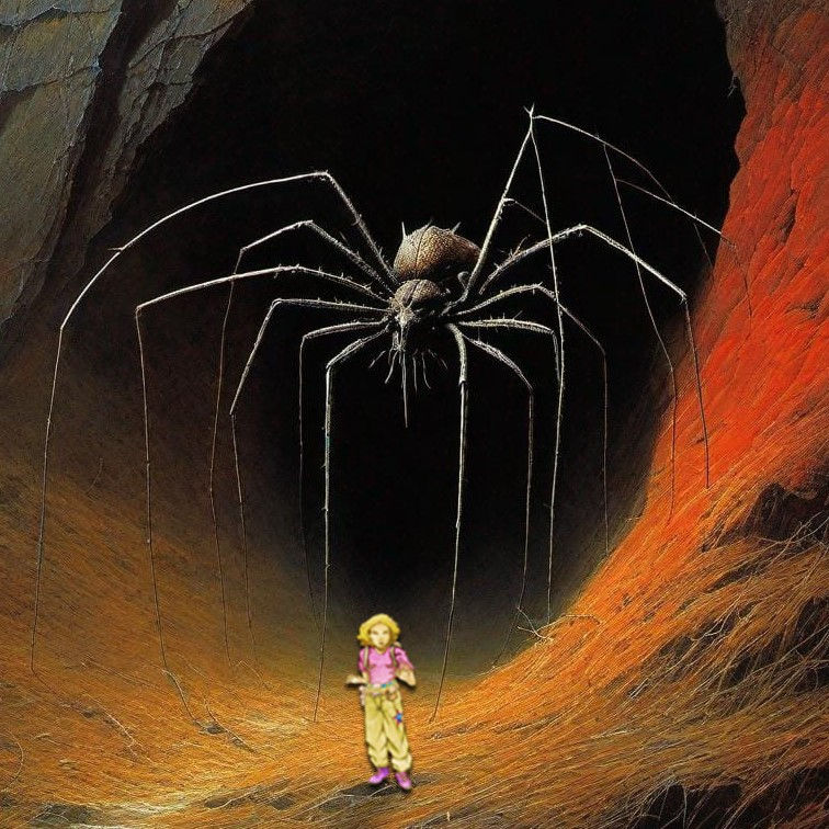 Y conociendo los miedos de Lucía, seguramente para ella, el encuentro más inesperado y desagradable sería con una araña... ¿Te imaginas si fuera con la Aracnodum que está cautiva en una de las cuevas del recinto?? ¡Pobrecilla!! Afortunadamente no hay ninguna razón para que ella se meta en su cueva...